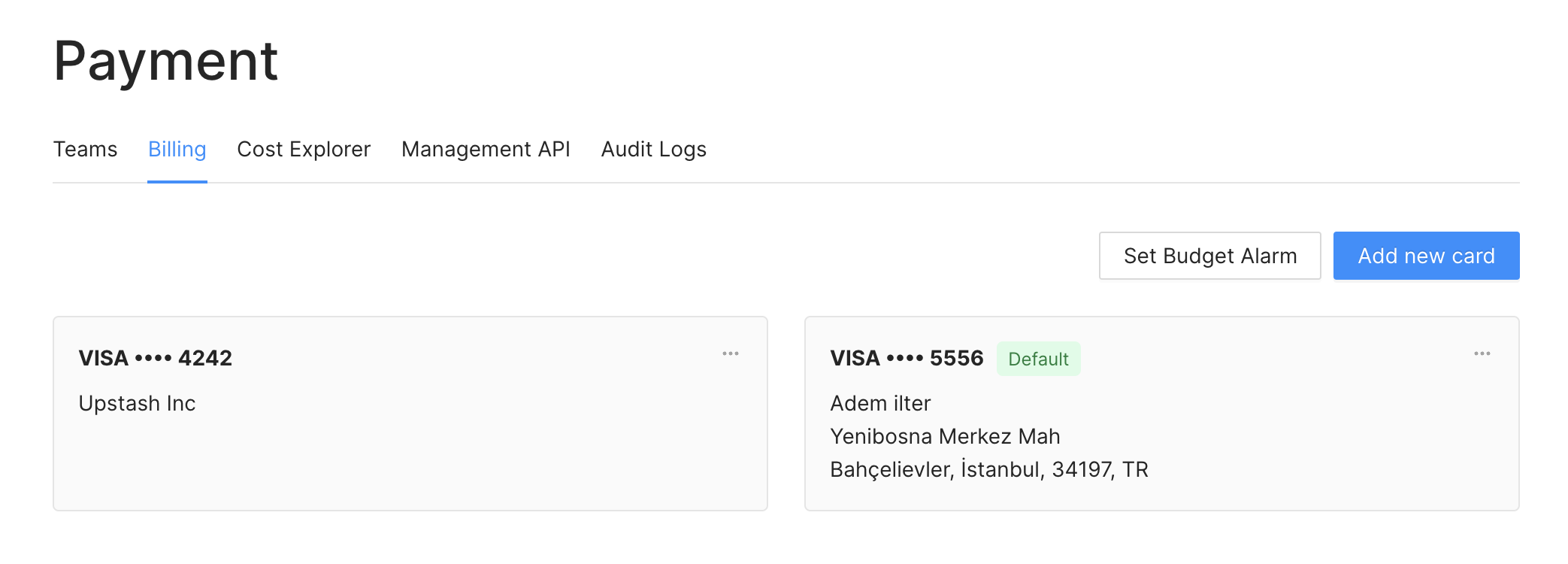 Account from the dropdown menu.Billing tab.Add Your Card button.