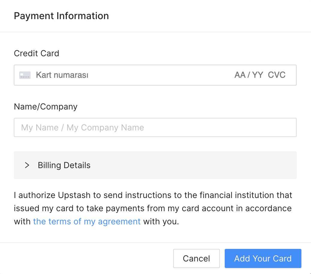 Add Your Cardbutton. - Enter your name and credit card information in the following form: