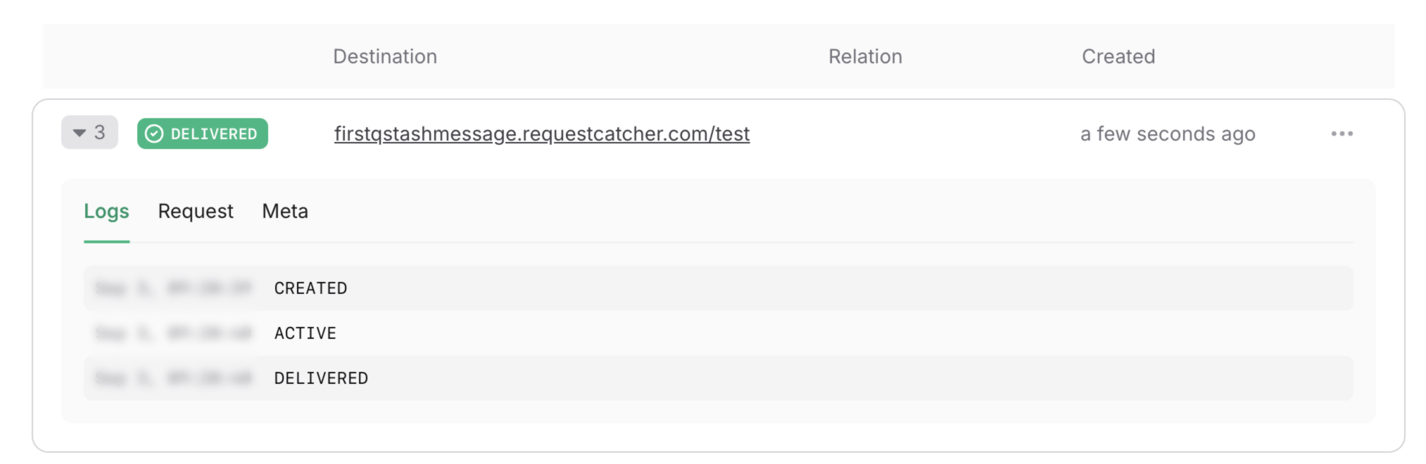 Make sure you have a publicly available HTTP API that you want to send your messages to. If you don’t, you can use something like requestcatcher.com, webhook.site or webhook-test.com to try it out. For example, you can use this URL to test your messages: https://firstqstashmessage.requestcatcher.com
