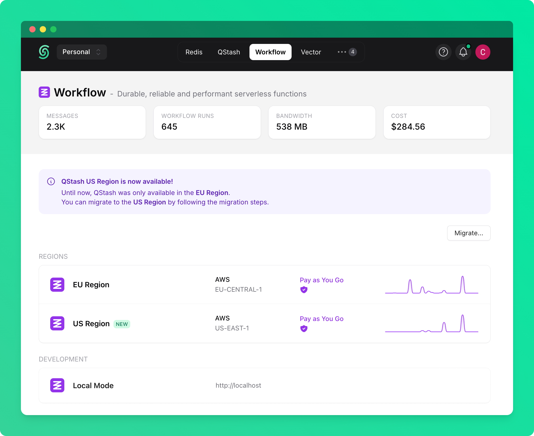 Once you start the local server, you can go to the Workflow tab on Upstash Console and enable local mode, which will allow you to monitor and debug workflow runs with the local server.